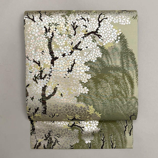 柳は柳色、桜は桜色、はっきりとして美しい名古屋帯です。
