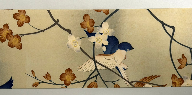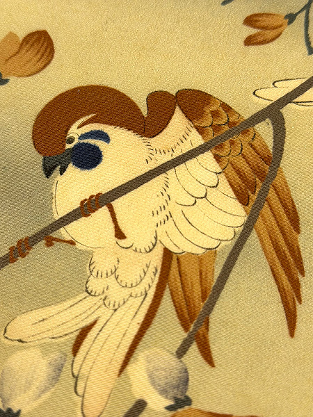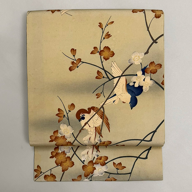 ウツギに小鳥の染め名古屋帯