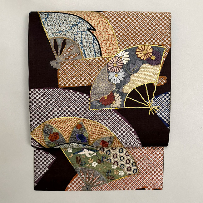 扇面に押し絵、刺繍文様の名古屋帯