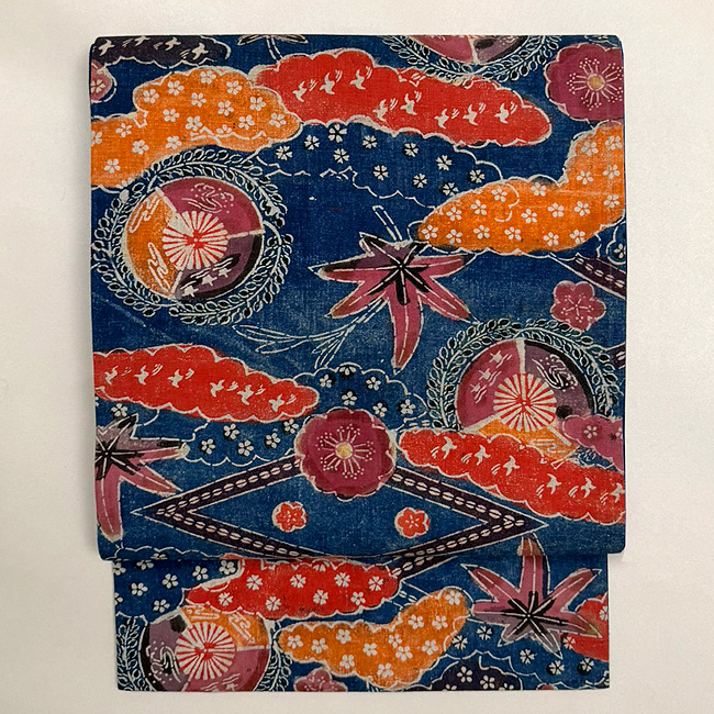 古紅型雲取り文様の名古屋帯