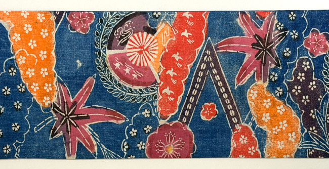 この裂は、実際の衣装の一部ではなく、出版のために図案を木版刷りしたものと考えられます。