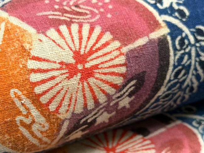 インド、インドネシア、中東、アフリカなど、世界各地で出会った心踊る布で仕立てた外国布、更紗の帯。