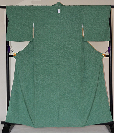 清々しい色目にかわいい図柄が、春先に新鮮な江戸小紋です。 年齢を問わずお顔映りの良い着物なので、帯の組み合わせ次第で、幅広く長くお召いただけます。