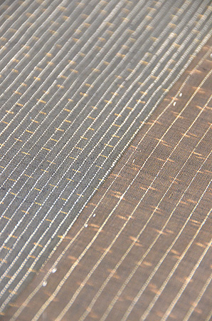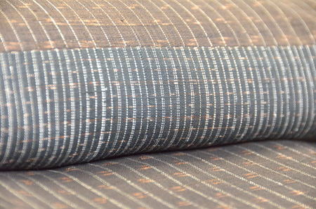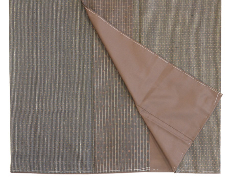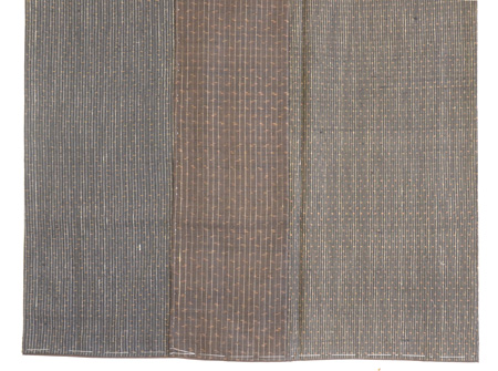 様々な久米島紬を切継ぎをお仕立てしました。 微妙に違う茶色の色や絣が一反ものでは出来ないような景色を生みだしています。 また、風合いも柔らかで優しい感触です。