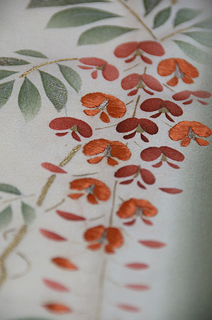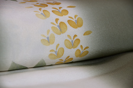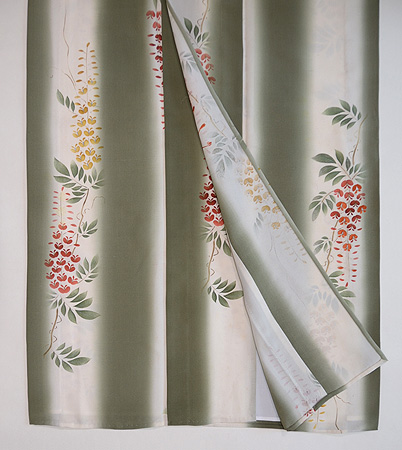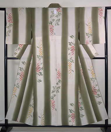 地色がお着物の印象付けに大切な事だと教えてくれる一点です。 流れるような落ち着いた緑が涼しげな藤棚を彷彿とさせてくれます。 桜が終わったら、5月は藤です。 いよいよ、この単衣の出番ですね。