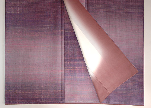 凛とした紬の風合いと、紅花染めの独特の柔らかい色使いの融和が特徴的な紬です。 ぜひ風合いの写真を拡大して、色合いの妙をご覧ください。 |