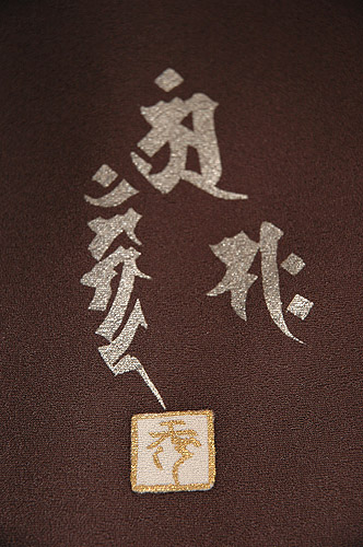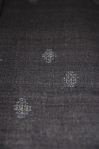 内田秀一作の江戸小紋です。 背中に唐花の刺繍の1つ紋が入っています。 |