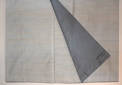 身頃、袖、襟がそれぞれ3種類の別の生地を使って仕立てました。 水をくぐって軽くなった着心地のよい一品です。 3種類の布を組み合わせた風合いが写真ではお伝え切れないため、ぜひ直接銀座店にてご覧ください。 |