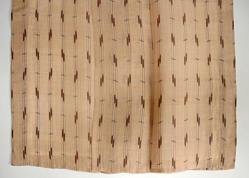 「喜如嘉の芭蕉布」で「平良」の印があります。 民芸に流れすぎずリズミカルで都会的なスピリットに溢れています。 手を触れた瞬間に、喜如嘉の風が体中を通り抜けるような感覚にとらわれる 非常にお勧めの秀品です。 |