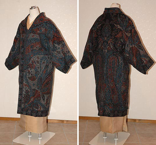 現代のカシミール織から仕立てたもので軽くて温かく、着心地の良さも魅力です。 和洋両用でお使いいただきたい、綺麗なブルーの逸品です。 |