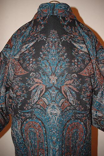 大正更紗は昭和初期ごろまで男性が縞の唐山着用の際に、 合着として重ね着ををして着用していました。 男性の隠れたおしゃれは今も昔も変わらないようです。 その大正更紗を袷に仕立てました。袖を通すとさらっとして軽く、 肌に優しい着物になりました。 |