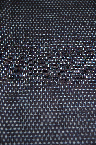 藍染め手織りの久留米絣です。 経糸と緯糸をあわせてできる絣柄の美しさをぜひご覧ください。 |