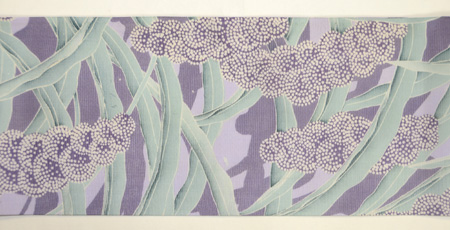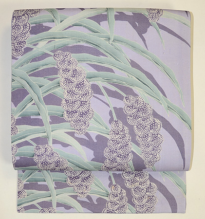 色といい柄といい、どこか懐かしさを誘う帯です。 どこか昭和初期のレトロな感じが漂う帯。 縞柄、無地、いろいろなお着物にすっと寄り添ってくれそうです。