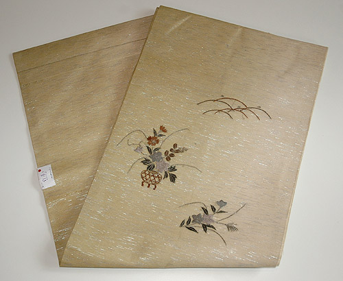 秋の花篭と露芝柄刺繍名古屋帯 ※帯8-11 39900円 通信販売可 展示店舗:銀座店 TEL:03-3564-1191 |
