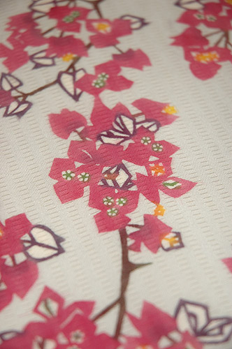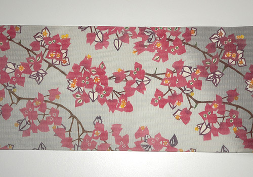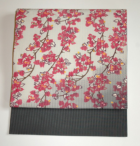 ブーゲンビリア柄型染名古屋帯 帯8-13 SOLD 通信販売可 展示店舗:銀座店 TEL:03-3564-1191 |