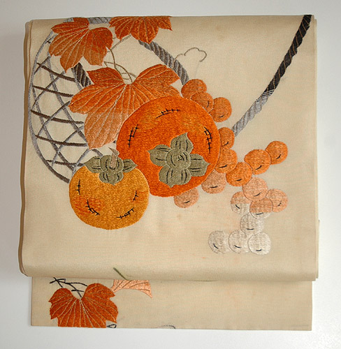 籠に果物刺繍名古屋帯 ※帯8-3 SOLD 展示店舗:銀座店 TEL:03-3564-1191 |