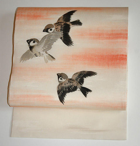 雀の開き名古屋帯 ※帯8-6 SOLD 通信販売可 展示店舗:銀座店 TEL:03-3564-1191 |