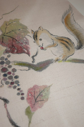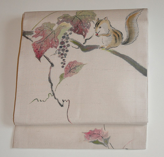葡萄の木に栗鼠の図名古屋帯 ※帯8-9 29400円 通信販売可 展示店舗:銀座店 TEL:03-3564-1191 |
