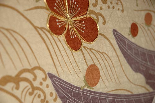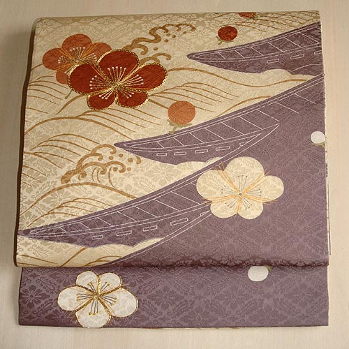 船に梅の図開き名古屋帯 帯12-10 SOLD 展示店舗:代々木本店 TEL:03-3467-0580 |