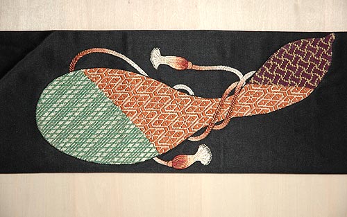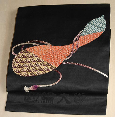 お太鼓部分に大きな瓢箪が描かれています。 繻子地もしっかりしていてお勧めの帯です。 |