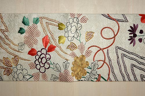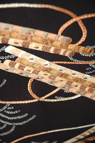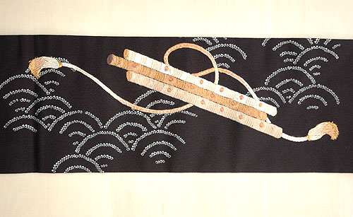 横笛刺繍名古屋帯 帯12-2 SOLD 通信販売可 展示店舗:銀座店 TEL:03-3564-1191 |