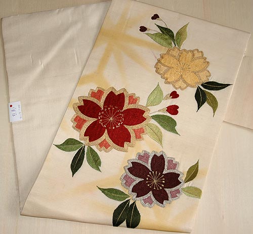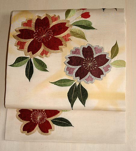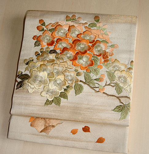 桜柄刺繍名古屋帯 帯12-9 SOLD 通信販売可 展示店舗:代々木本店 TEL:03-3467-0580 |