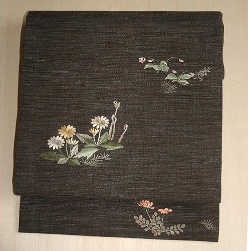 春野草刺繍柄紬地名古屋帯 帯12-5 147000円 通信販売可 展示店舗:銀座店 TEL:03-3564-1191 |