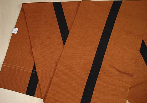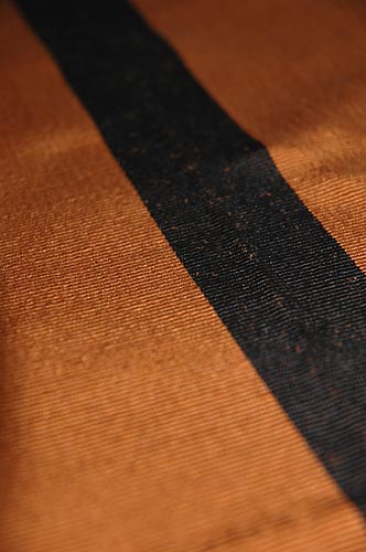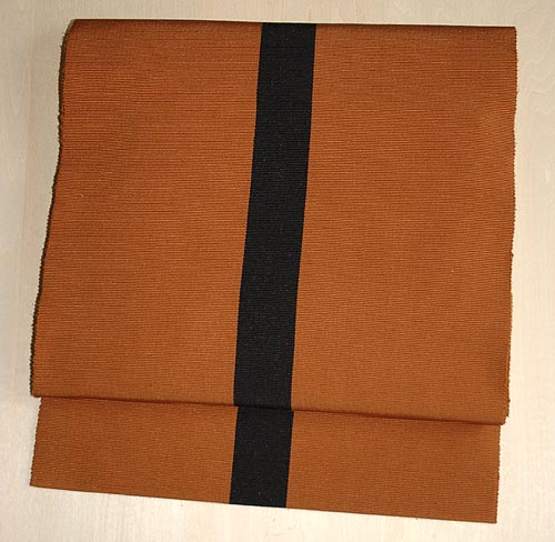 すっきりとした持ち味で伊兵衛織のよさが出た帯で、筋の通った黒のラインが帯自体の存在感を強く引き出しています。 |