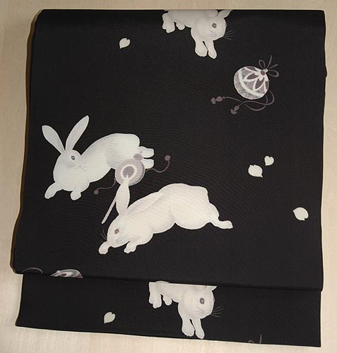 ウサギ柄染名古屋帯 帯12-8 SOLD 通信販売可 展示店舗:代々木本店 TEL:03-3467-0580 |