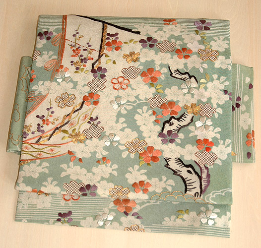 霞に桜と扇散らし 開き名古屋帯 ※帯3-1 SOLD 通信販売可 展示店舗:銀座店 TEL:03-3564-1191 |