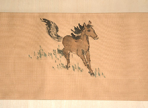 春の風に遊ぶ駿馬の姿がいきいきと描かれています。 使いやすい色で、どんな着物にも合わせやすい帯です。 |