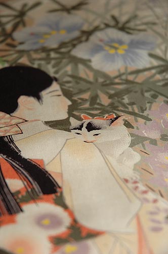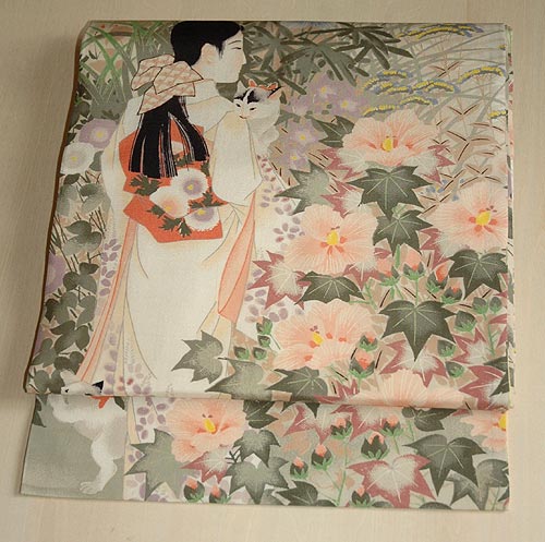 乙女と猫の図名古屋帯 ※帯10-4 SOLD 通信販売可 展示店舗:代々木本店 TEL:03-3467-0580 |