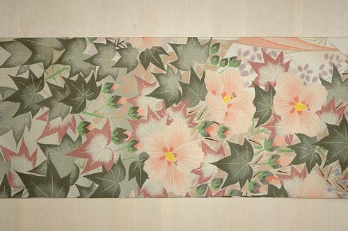 深みのある牡丹色が美しい浦野さんらしい名古屋帯です。 当店でも浦野さんの作品は力を入れて集めているものの1つですが、今回は3点ほど(帯1点、着物2点)作品が入荷しました。 浦野さんの作品は、その工芸の高さ、独創性において手に取るものを魅了します。 少し肌寒くなった今日この頃、この秋はどんな装いをしようかしらと、楽しい思いがいっぱいに膨らむような帯です。 |