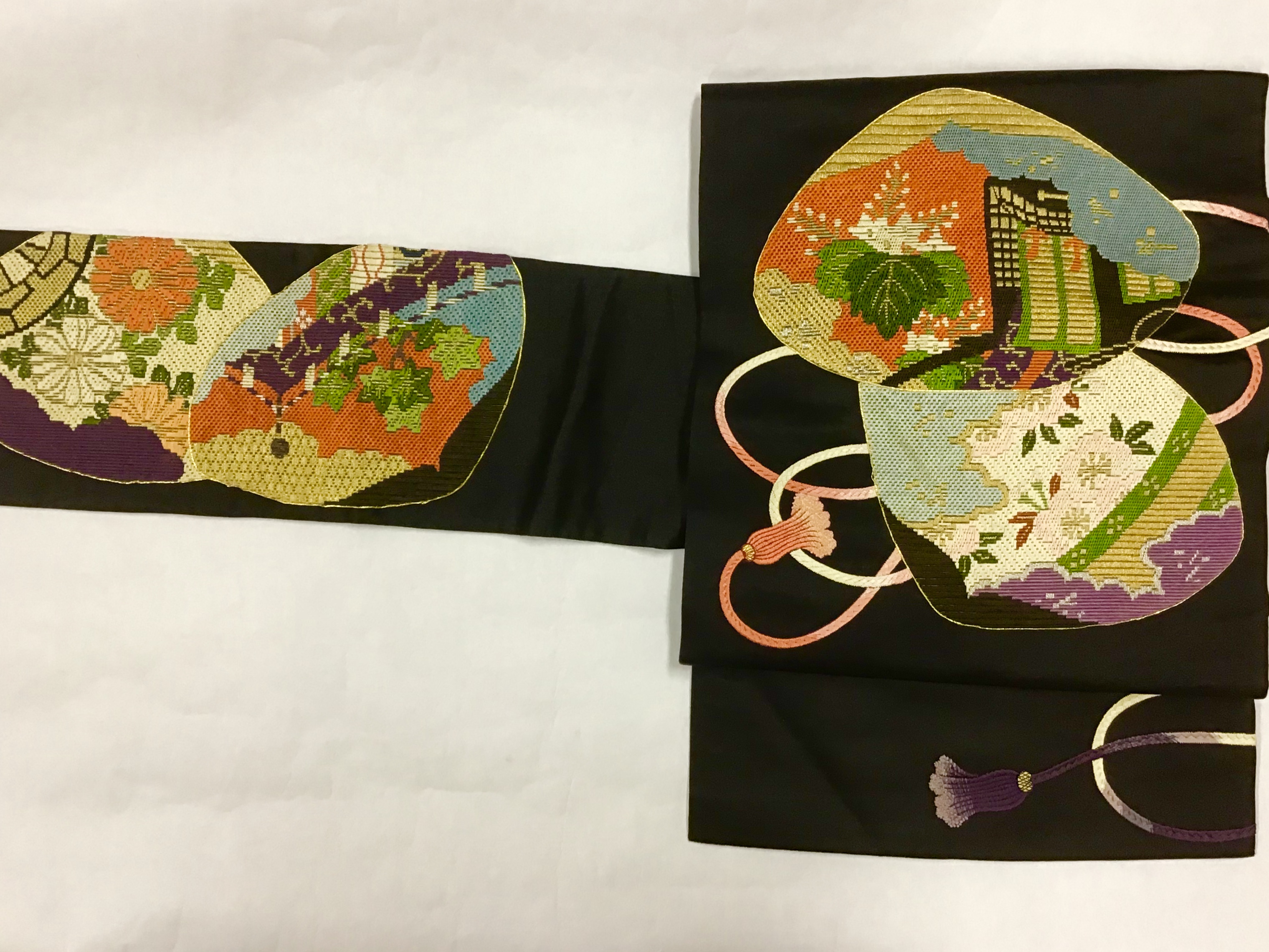 まずは豪華な袋帯をお使いやすい開き名古屋帯に仕立て直した三点です。