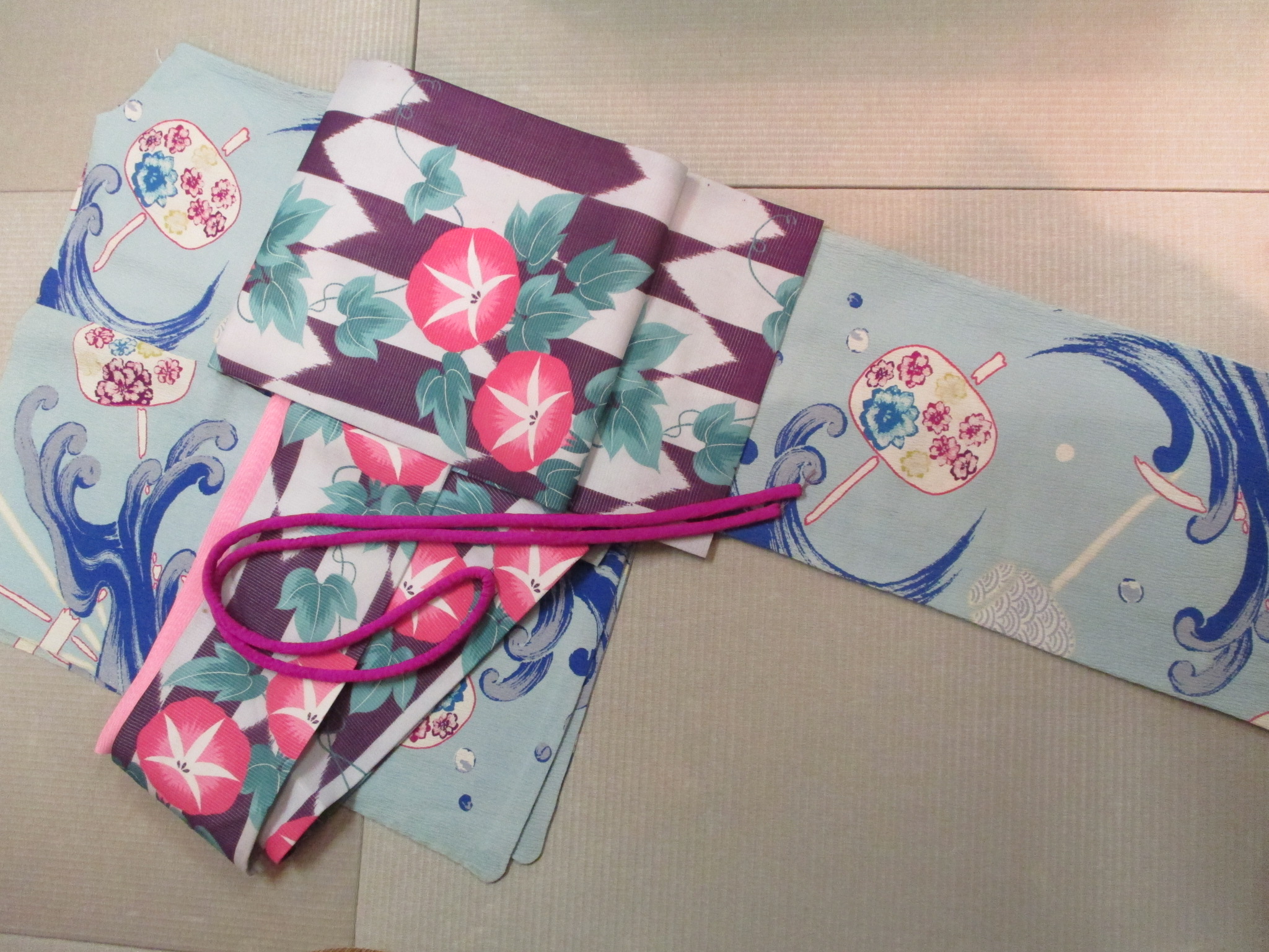 矢羽根に朝顔紋の染絽名古屋帯 35000円+税