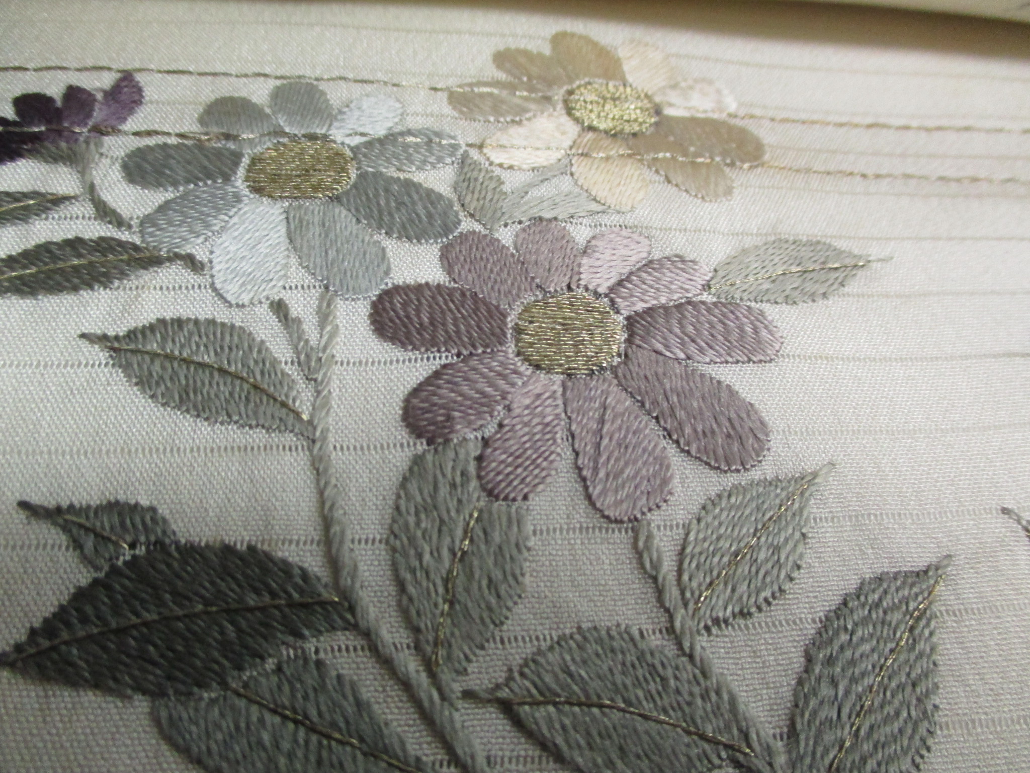 錦紗は、袷にもお仕立てされますが、ご紹介致しますのは、繊細で伸びやかな糸で柄が織り込まれた透け感のある紋錦紗です。