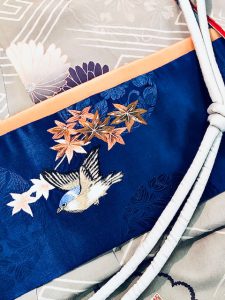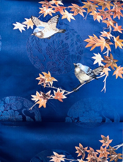 紅葉にルリビタキ刺繍の名古屋帯   130,000円(税込) (帯21-11-15)
