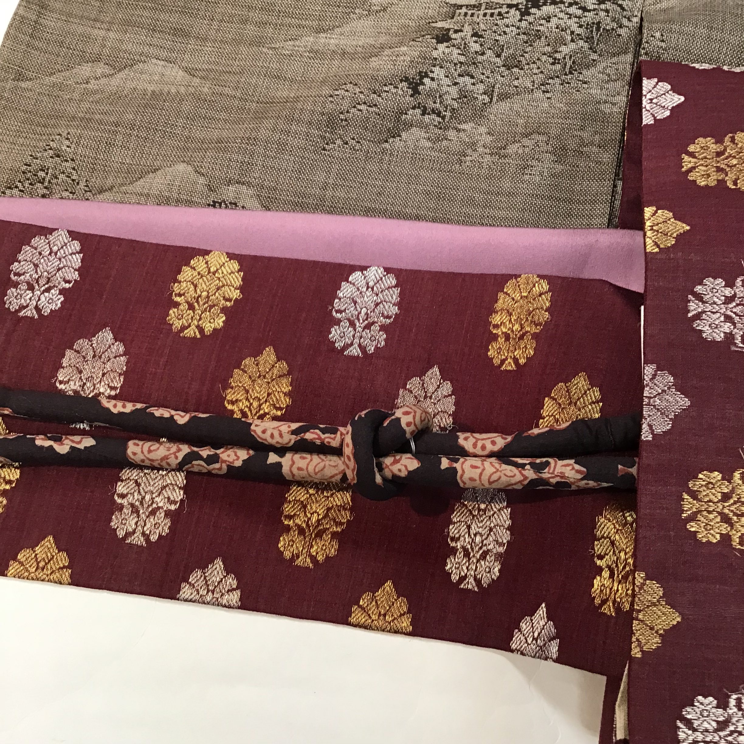 いずれもアンティークの布の見本市のようなとても凝った帯ですよ。