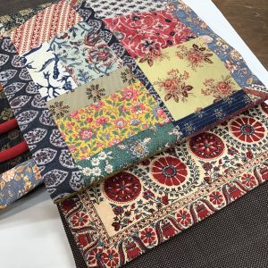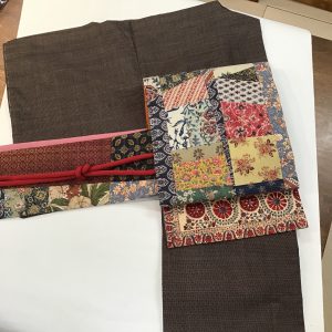 本日はジャワ更紗、インド更紗、ヨーロッパ更紗の型紙による継ぎ帯で可愛らしく華やかにコーディネート。