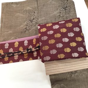 まずは蚊絣の渋々系の大島紬。