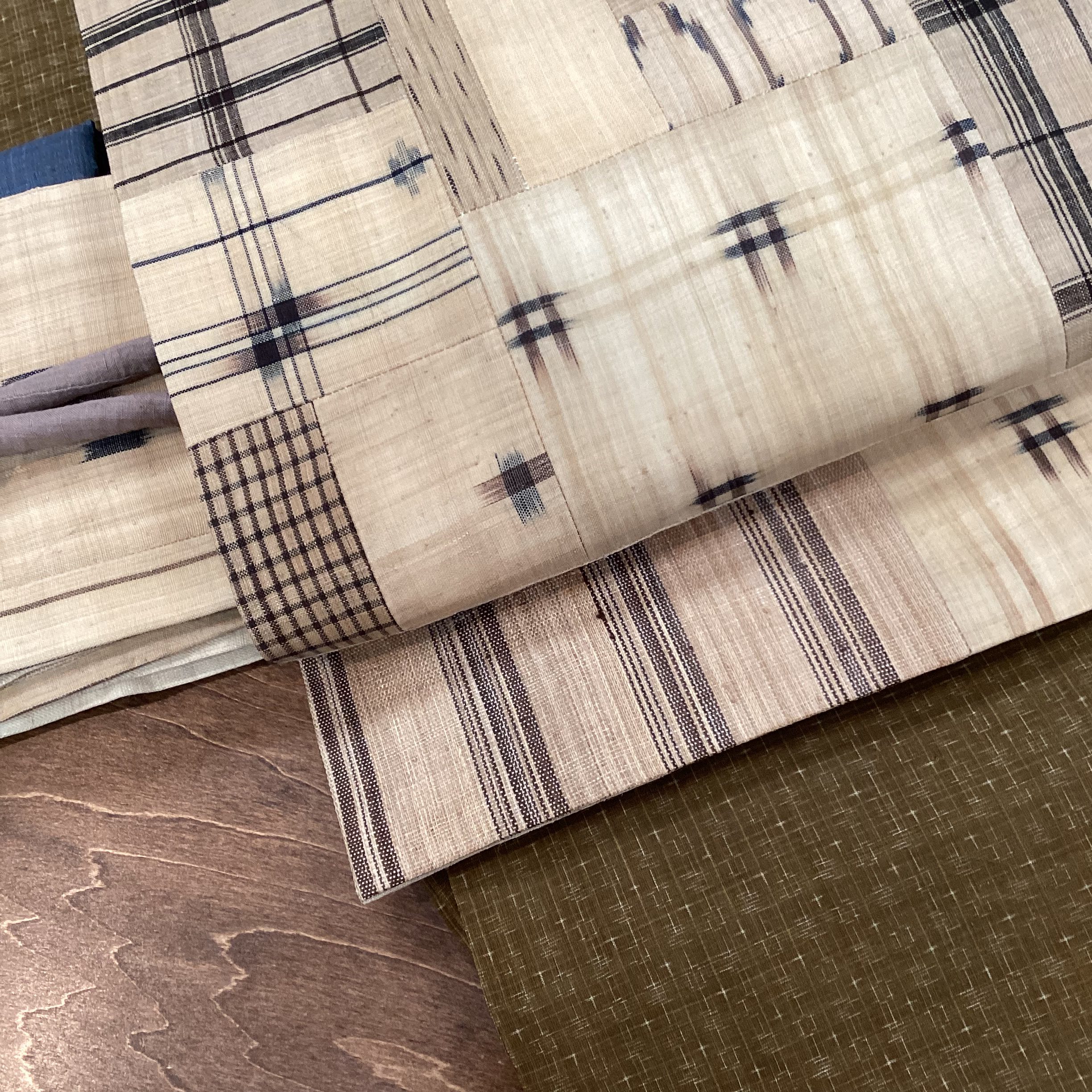 そして次にご紹介するのは、越後上布など様々な麻素材の継帯コーディネート