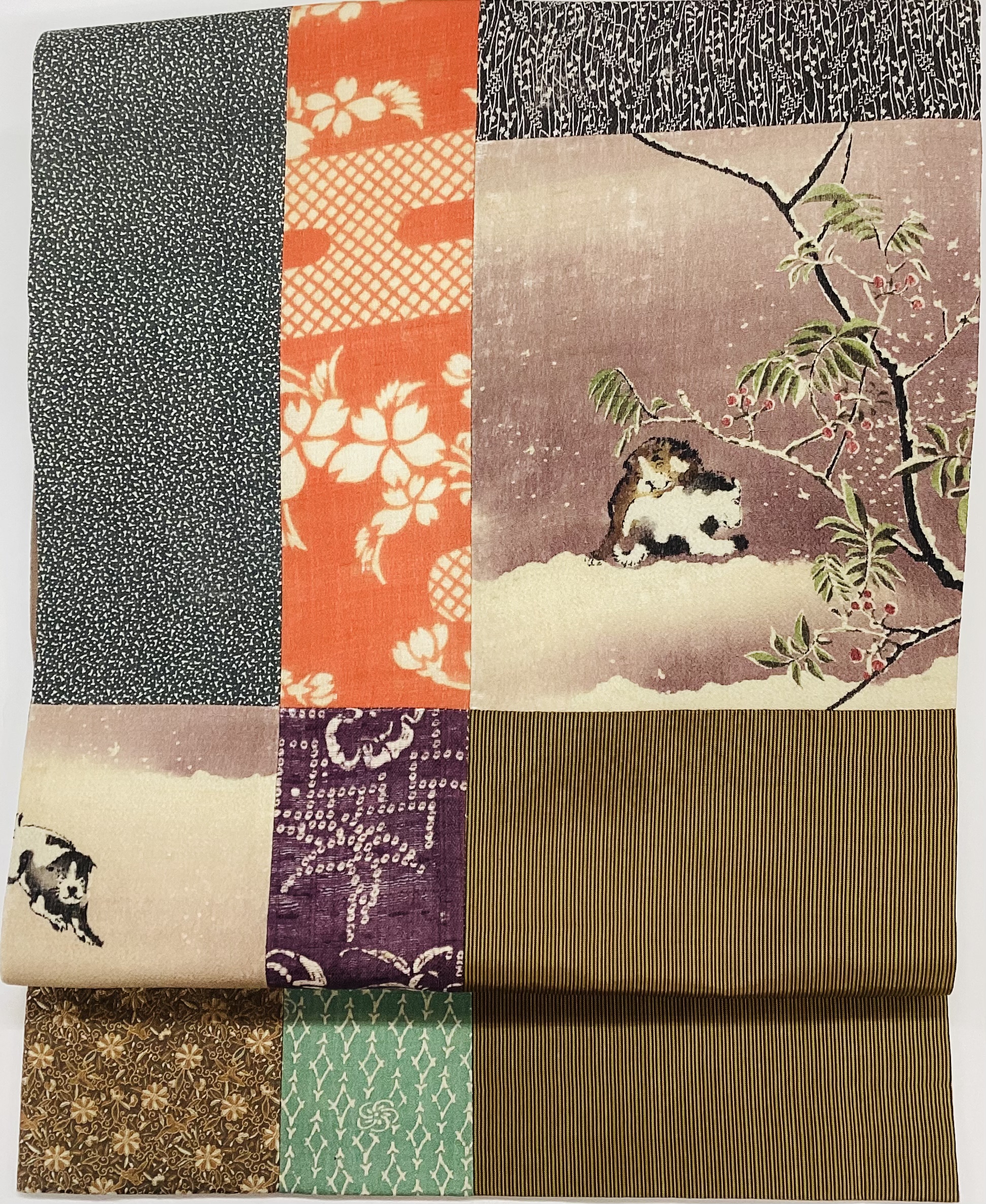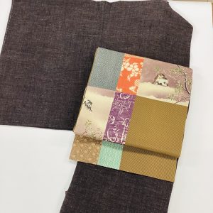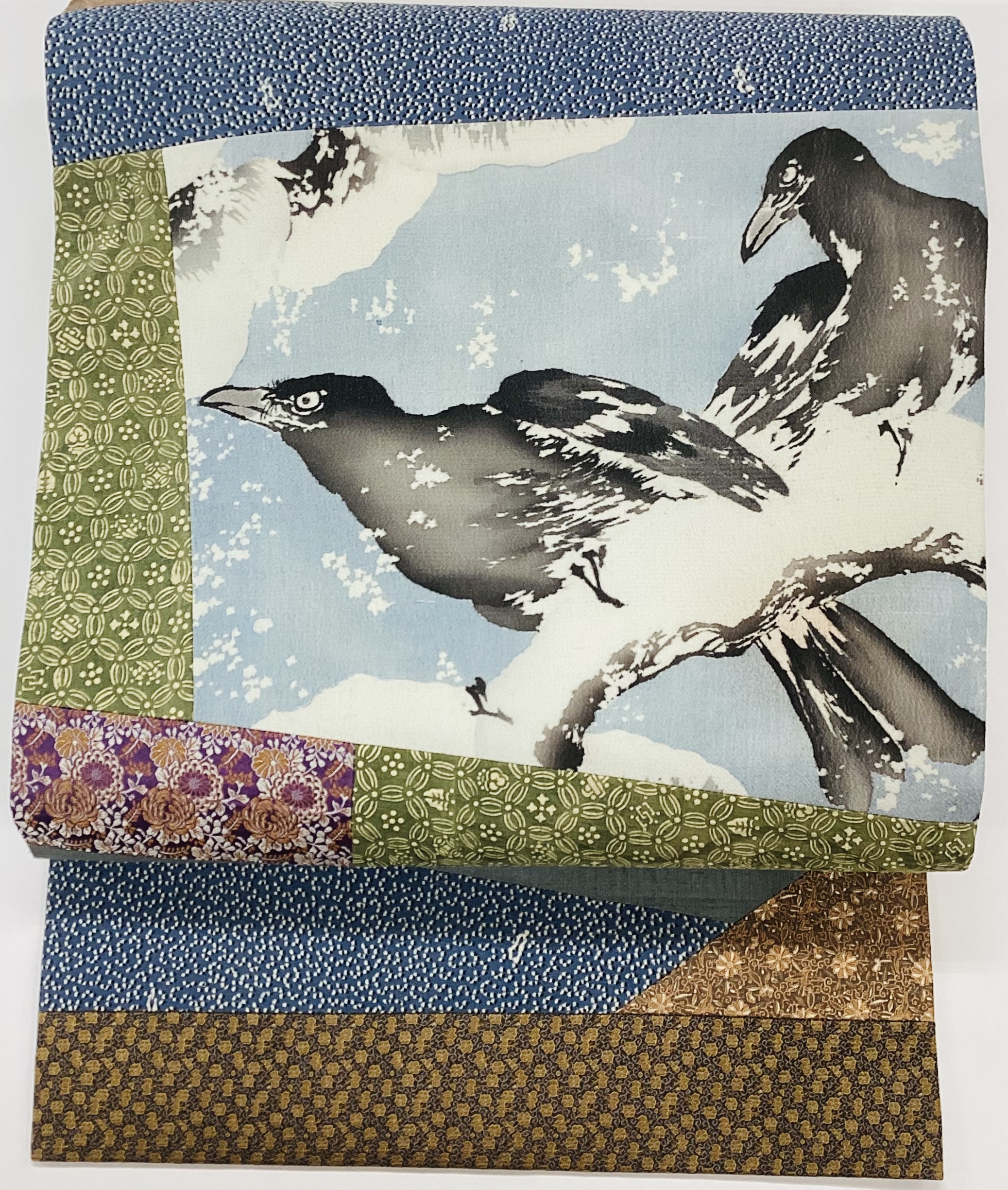 最新作、雪中夫婦烏に江戸小紋寄せ裂帯 23−01−10 132,000円