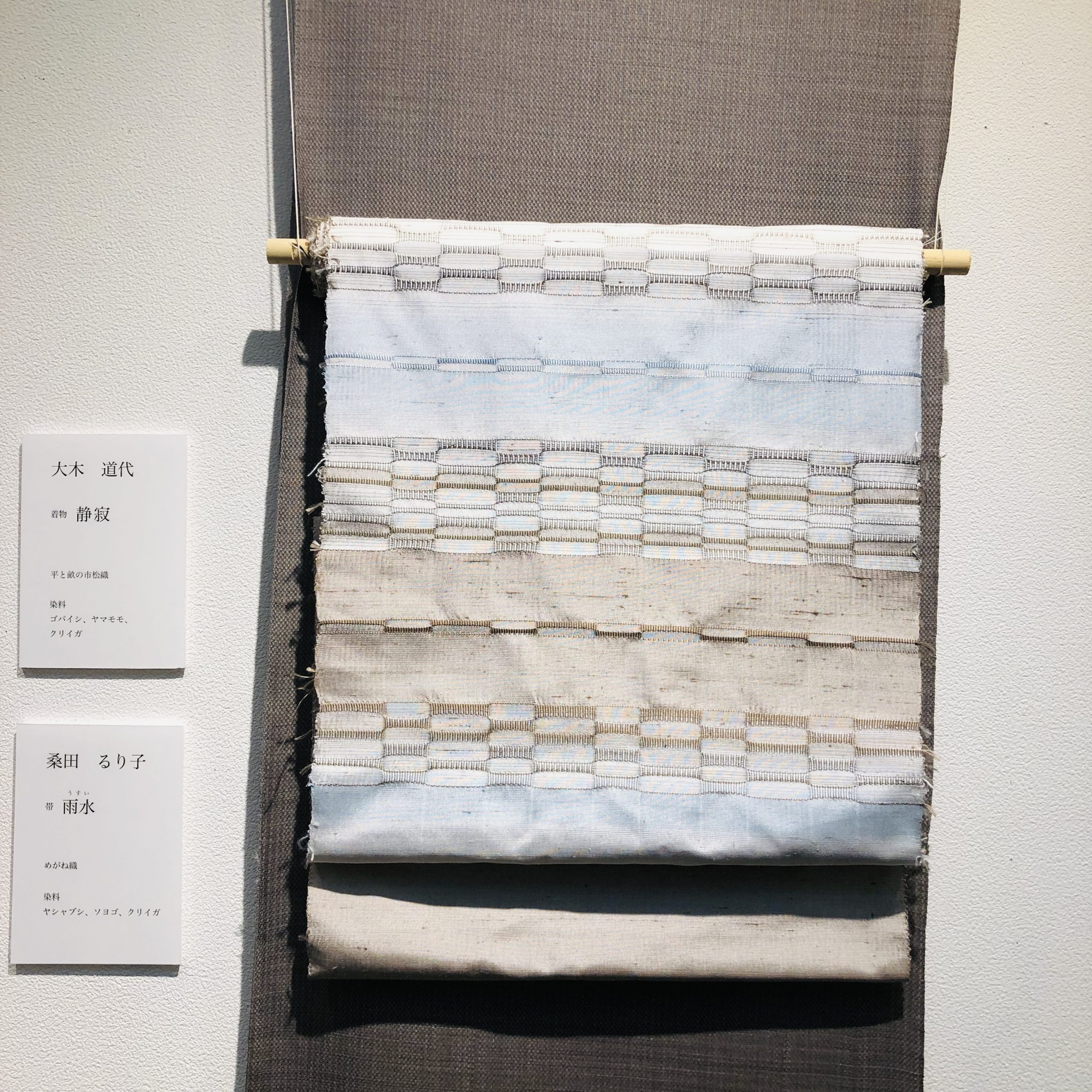 色合いも優しい眼鏡織の帯。糸の草木染から始められ約1年がかりの作品とのこと。