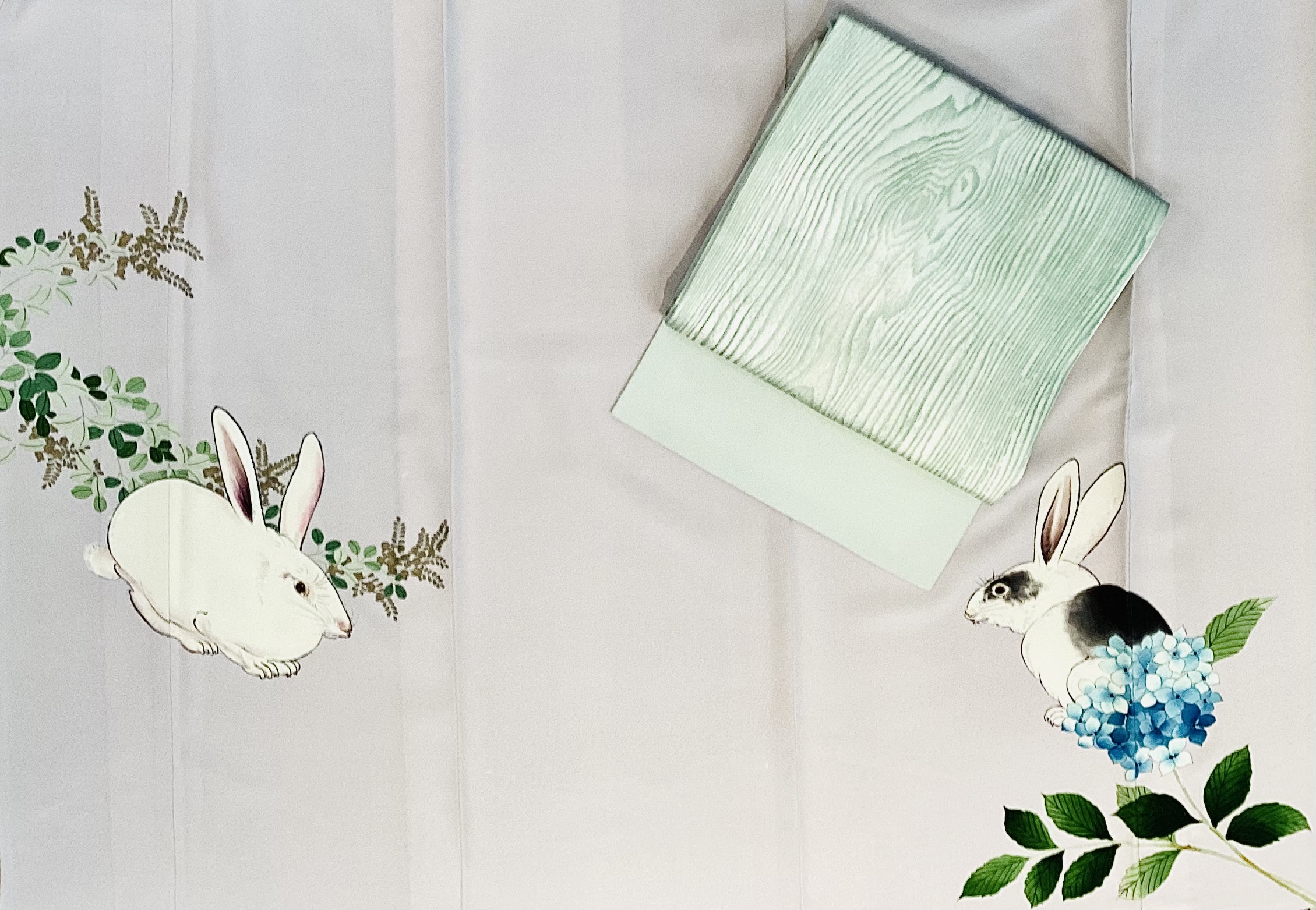 さように人気のうさぎ文様の帯を、着物を合わせてご紹介します。