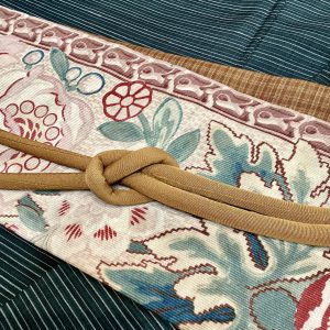 合わせたのは美しいグリーンと白の横縞でさらっとした風合いの着物。これから活躍しそう。いかがでしたでしょうか?ぜひ、店頭で、又は、通販でお求め下さいませ。