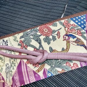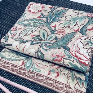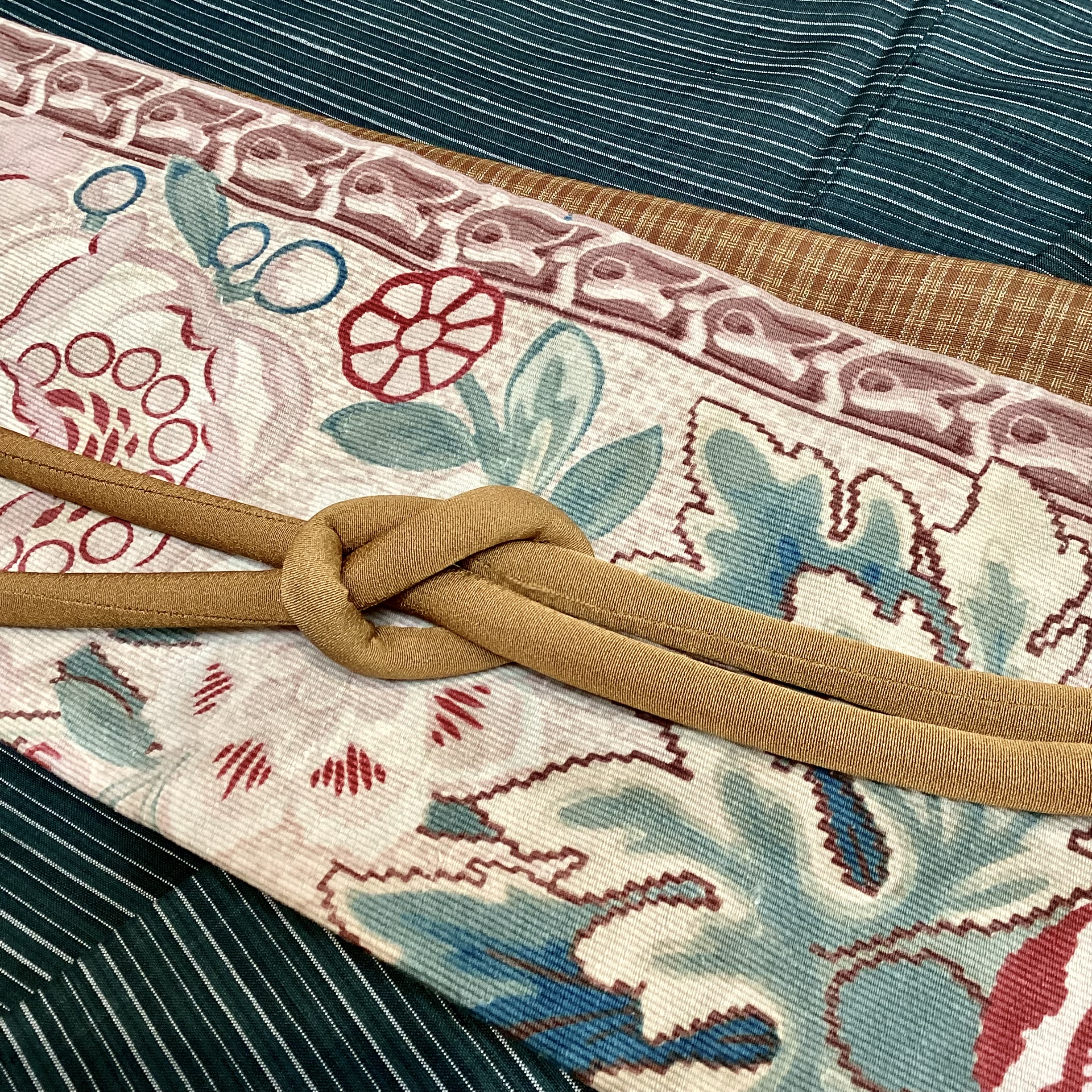 こちらはフランスのタペストリーから作ったものですが、少しオリエンタルな雰囲気もある華やかな帯。