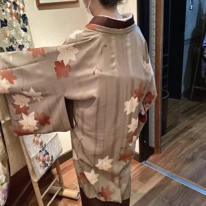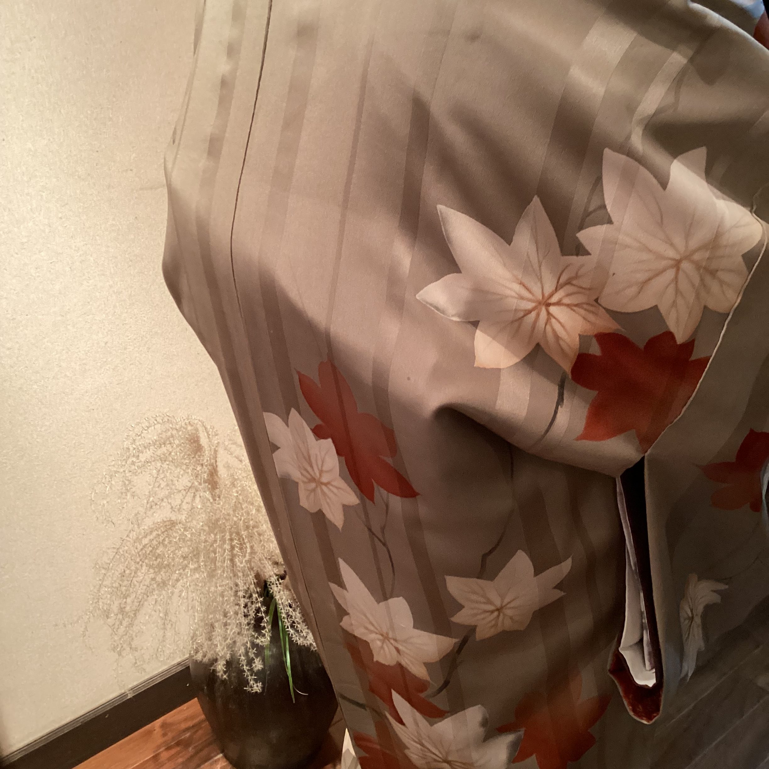 まずは、今の季節にぴったり!紅葉模様の羽織をお召しのお客様。