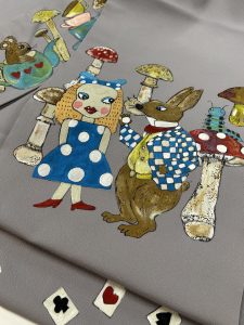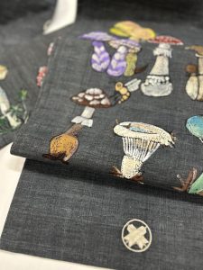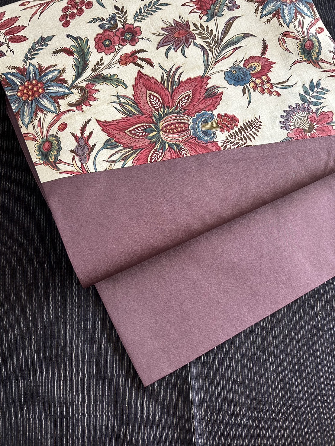 藤色に藤を描いた帯は、地紋にも藤が入って、まさに藤尽くし。
