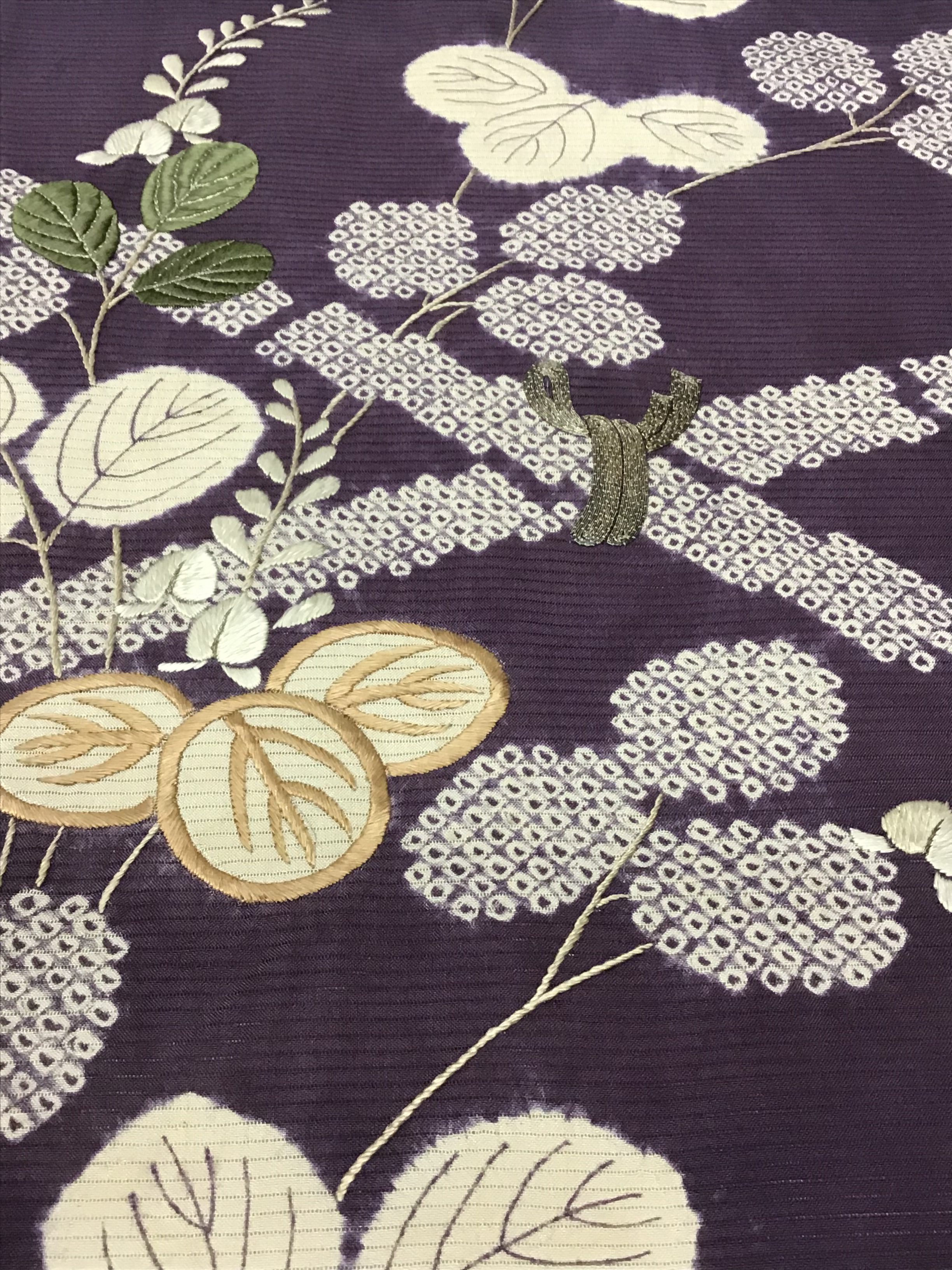 紫地扇面に四季の花刺繍訪問着 60,000円+税