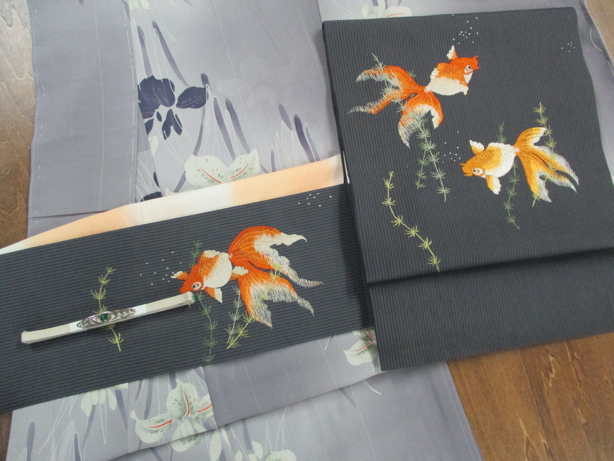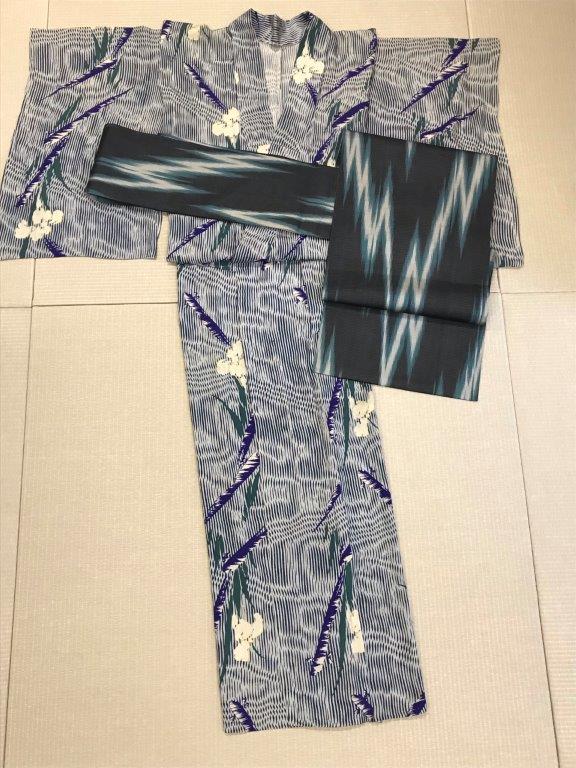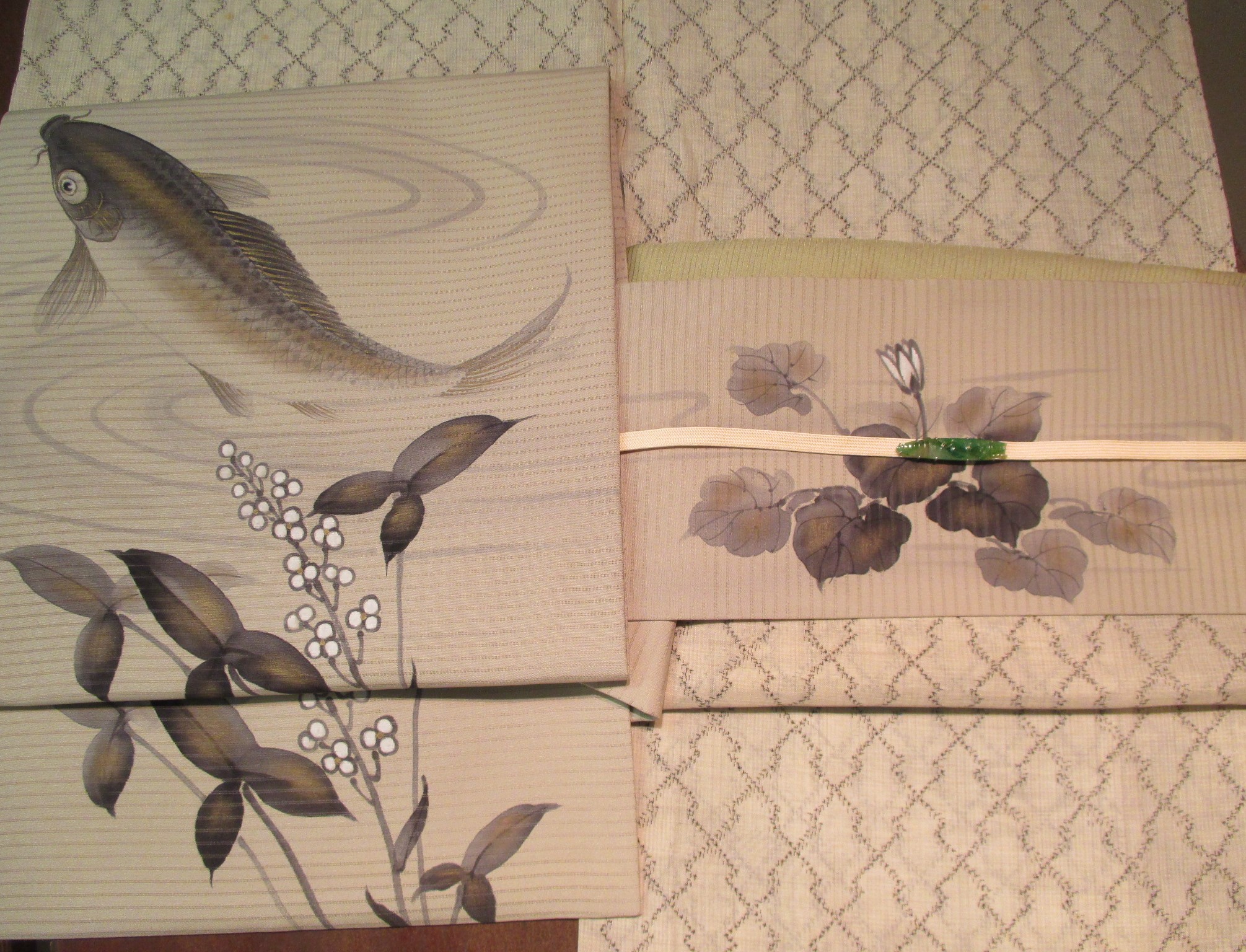 帯は麻の半幅帯を合わせてみました。暑い日の気軽なお出かけにいかがでしょうか。